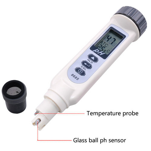 簡介:12cm長PH探針大液晶顯示器雙顯示PH量程範圍0.00~14.00溫度量程範圍 0~60°C
